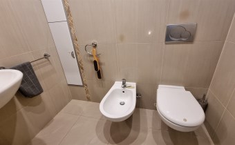 WC - z umywalką, sedesem i bidetem, podłoga terakota, ściany glazura