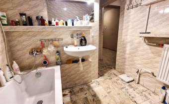 - ŁAZIENKA/PRALNIA - z wydzielonym WC 8,1  m, wanna, umywalka,  podłoga marmur łupany, ściany glazura
