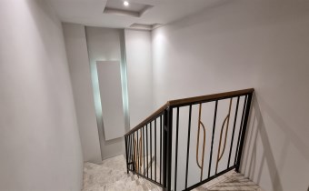 - STANDARD WYKOŃCZEŃ: na podłogach w pokojach deski drewniane i panele, ściany gładzie gipsowe, sanitariaty - aglomarmur i glazura, kuchnia i holl  aglomarmur, barierki metalowe