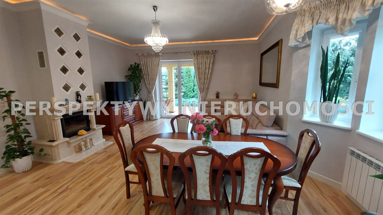 - salon o pow. 29m2, jest tu kominek; z salonu jest wyjście na duży taras
