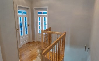 Piękne drewniane schody prowadzące na poddasze odkrywają przed nami korytarz prowadzący do trzech przestronnych i funkcjonalnych sypialni. Każda z nich została zaprojektowana z myślą o maksymalnym komforcie mieszkańców. Na piętrze znajduje się również duża łazienka z wanną oraz mini garderoba. Z głównego holu jest wyjście na duży balkon.