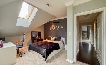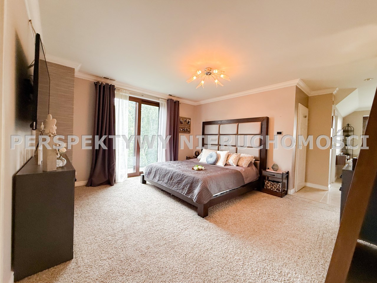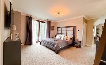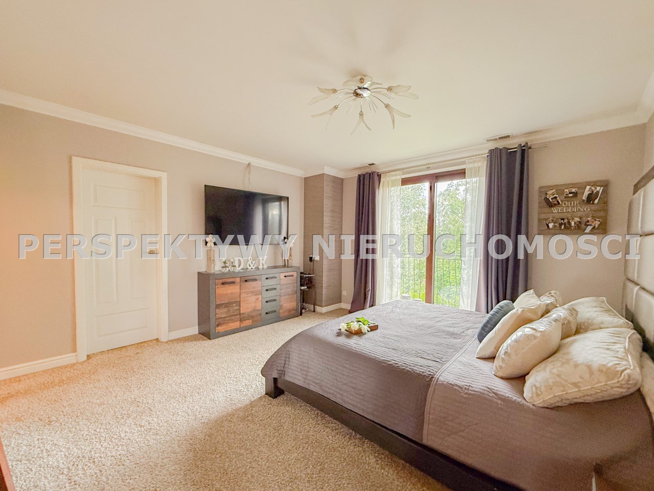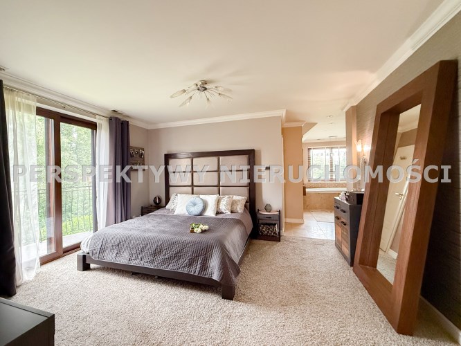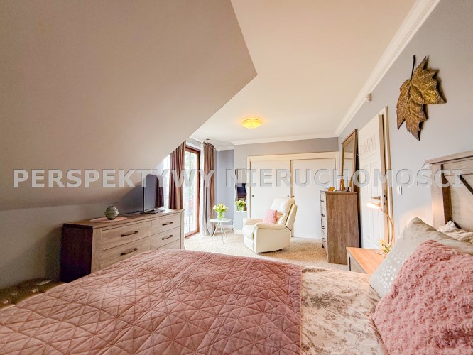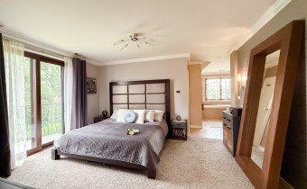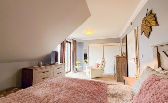 Pierwsza sypialnia jest z balkonem z dużym oknem na stronę od wjazdu na nieruchomość.