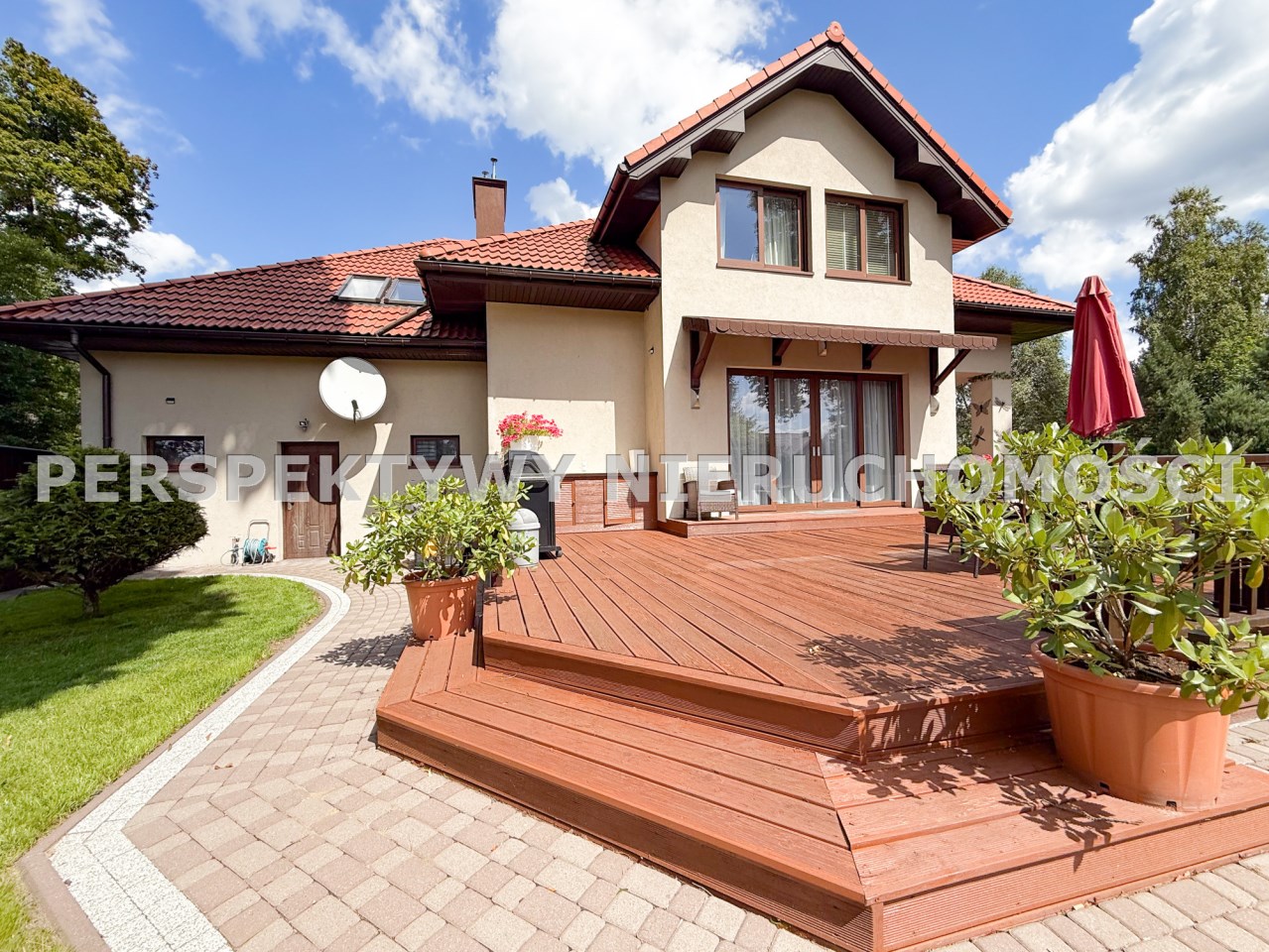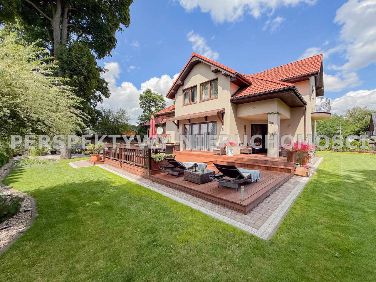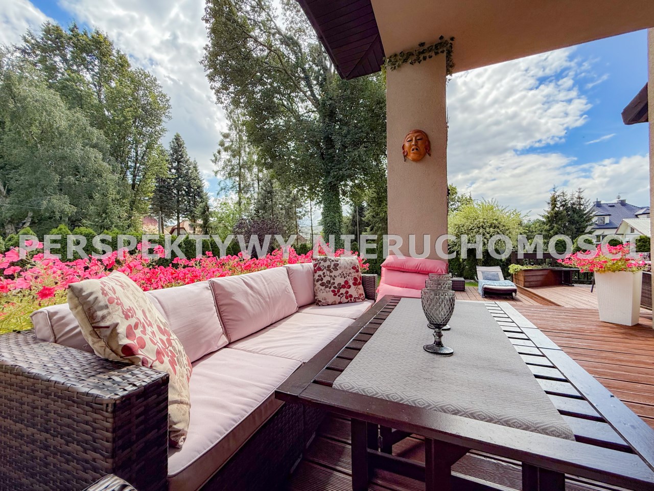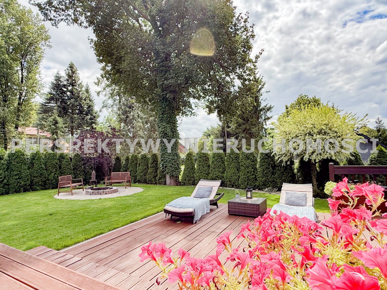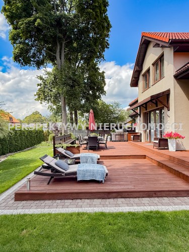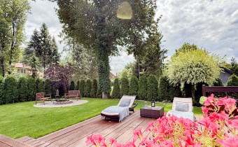 To co znajduje się na zewnątrz z pewnością jeszcze bardziej Cie zachwyci... przepięknie zagospodarowany ogród(z systemem nawadniającym) po 2 stronach budynku daje możliwości swobodnego relaksu, to miejsce do opalania się oraz przyjmowania gości lub po prostu intymnej, prywatnej przestrzeni. Teren jest  ogrodzony i zadrzewiony, sąsiedztwo nie jest praktycznie widoczne. Liczne nasadzenia i bardzo zadbany trawnik sprawiają że można cieszyć się naturą cały rok.