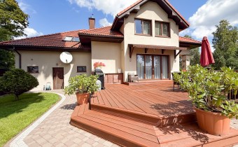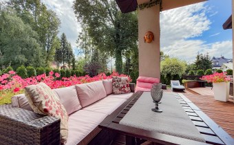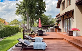 Grill party na tarasie to gratka dla amatorów biesiadowania a duża przestrzeń na działce o powierzchni 1034 m2 pozwala na dalsze aranżacje wedle potrzeb rodzinnych.