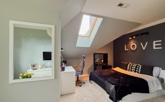Na pół piętrze mamy ciekawą przestrzeń do własnej adaptacji- aż 33 m2-, można stworzyć tu pokój do zabaw dla dziecka, wydzielić dodatkowe sypialnie lub miejsce do rekreacji.