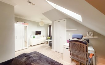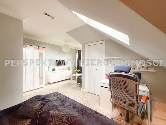 Na piętrze mamy nie jedną ale aż trzy garderoby, dwie są z oknem (trzecia bez okna w mniejszej sypialni), to dopełnienie komfortu całości. Wszystko w nich jest zorganizowane i łatwo dostępne.