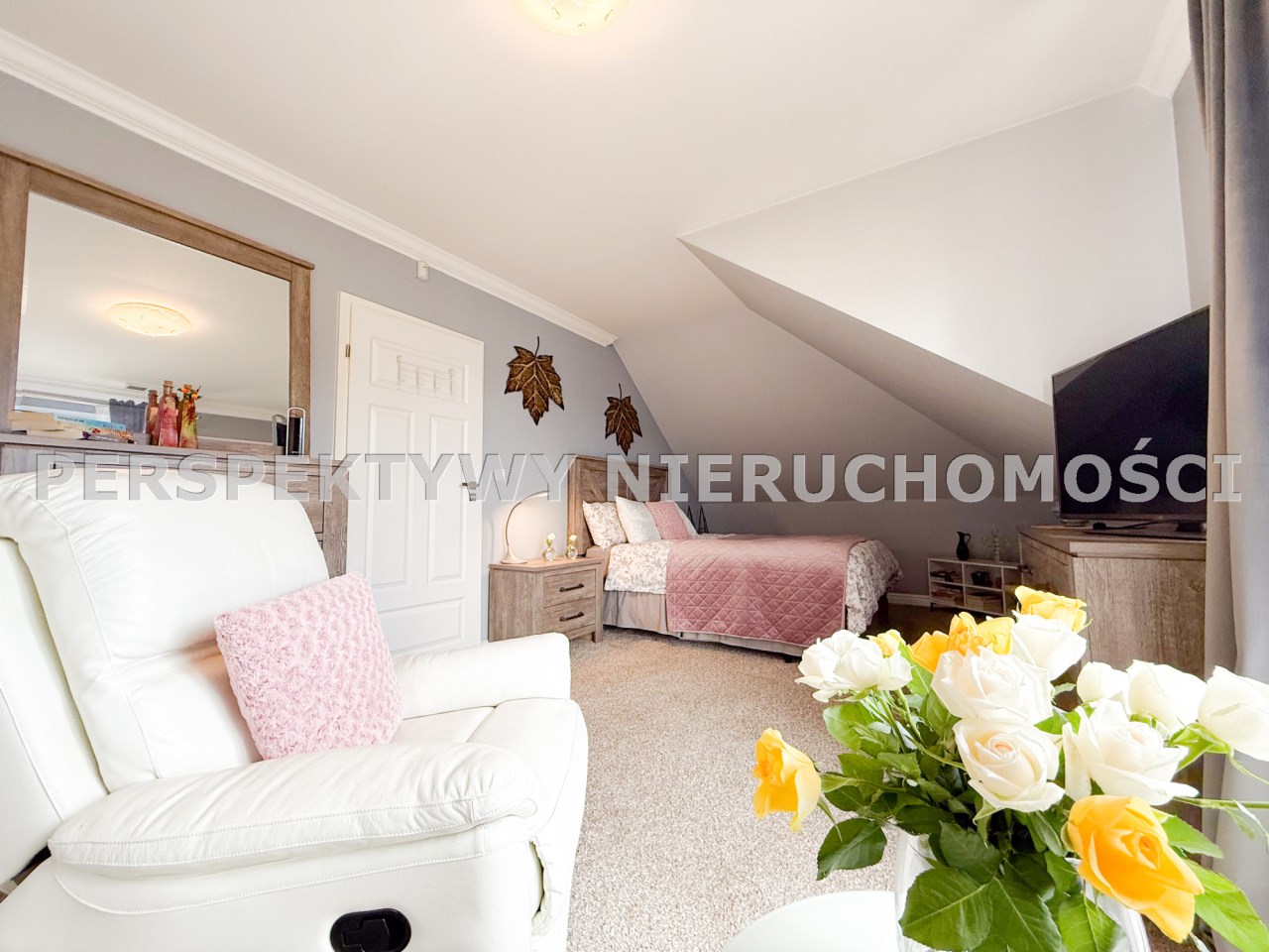 Dodatki do wyposażenia wnętrz wykorzystane do sesji zdjęciowej nie stanowią części oferty, mają jedynie charakter dekoracyjny i stanowią własność biura nieruchomości.