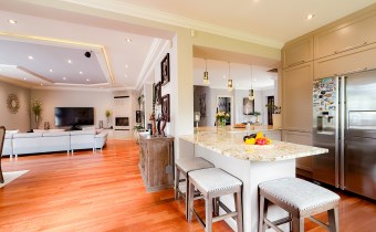 Mijając gabinet na lewo pojawia się ogromna wyspa kuchenna która zaprasza aby wygodnie się rozgościć.