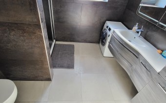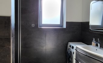 Posiadamy do dyspozycji parter domu z przestronnym salonem i wyjściem na taras, słoneczną sypialnią z widokiem na ogród, kuchnia ze spiżarnią otwarta na salon, łazienka z wc wyposażona kabinę prysznicową, meble łazienkowe i wbudowane radio z głośnikami pod sufitem, na wyposażeniu nowa pralka, garderoba w trakcie adaptacji.