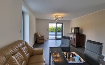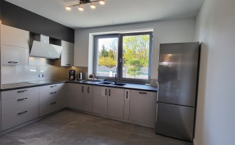Wszystkie sprzęty nowe z gwarancją, bardzo wysoka jakość materiałów i wykończenia domu. Meble i sprzęty są nowe, na gwarancji. Sprzęt AGD na wyposażeniu: zmywarka, lodówka z zamrażarką, płyta indukcyjna, piekarnik, czajnik, pralka, zestaw nagłośnieniowy zabudowany w suficie salonu. Mieszkanie jest bardzo jasne, wygodne i przytulne, nowocześnie urządzone – idealne także do pracy w domu.