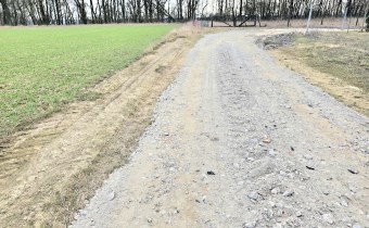 Dojazd asfaltowy, ostatnie metry droga wewnętrzna utwardzona jak na załączonym zdjęciu.