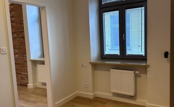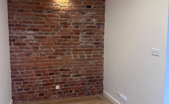 W lokalu nowy sprzęt AGD, nowe okna, drewniane drzwi dodające uroku, oryginalna cegła na ścianach.
