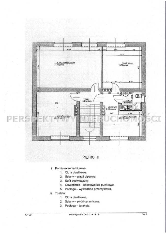 II PIĘTRO - 103,20 m :  sala konferencyjna,  2 pokoje, pomieszczenie socjalne - KUCHNIA, WC z prysznicem,