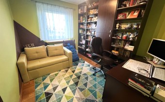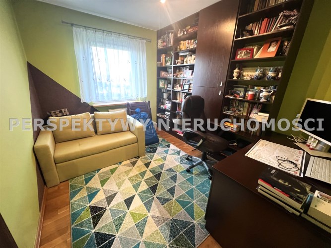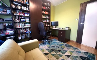 - GABINET/DRUGA SYPIALNIA: 10 m², kanapa rozkładana, duży regał z półkami, biurko z krzesłem na kółkach,