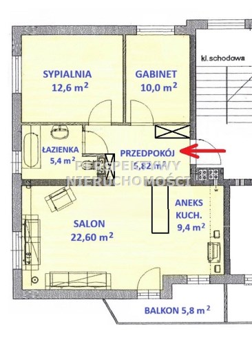- SALON: 22,6 m², otwarte wejście z przedpokoju, połączony z aneksem kuchennym, wyjście na balkon, w meble i sprzęty widoczne na zdjęciach w cenie oprócz stołu i ławy,