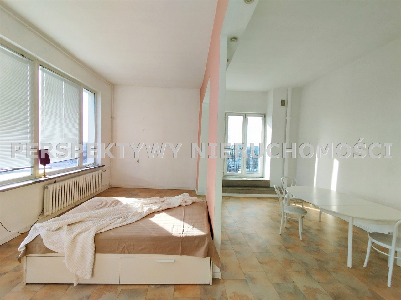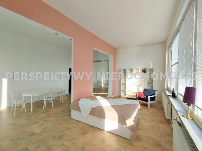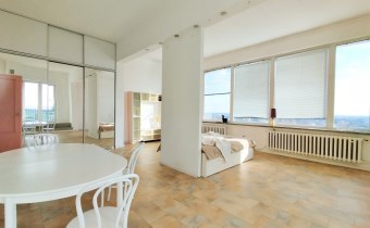 Przestronne mieszkanie o powierzchni ok. 62 mkw, o nietypowym rozkładzie położone na 11 piętrze w wieżowcu z windą nowego typu. Mieszkanie składa się z dużego pokoju (ponad 40mkw), kuchni, łazienki z wc i przedpokoju, z którego jest wejście schodami na niewielką antresolę. Mieszkanie posiada duży balkon z ciekawym widokiem. Wystawa okien - południe, wschód, zachód.