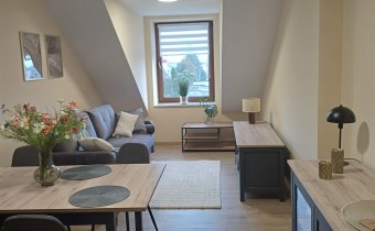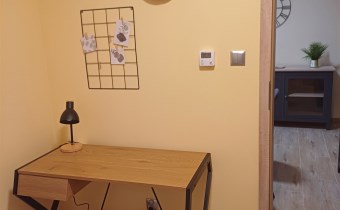 Mieszkanie wyposażone w zestaw mebli kuchennych z urządzeniami(lodówka, zamrażarka, kuchnia z piekarnikiem , zmywarka) +stół z krzesłami, komoda. pokoje umeblowane łóżka, szafy, biuro.