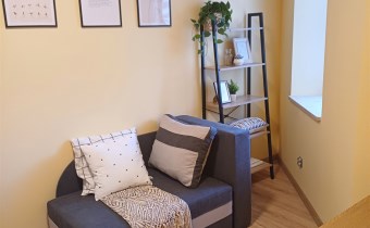 Mieszkanie składa się z :salonu,2 małych sypialni, osobnej kuchni, łazienki i toalety.Duży balkon.